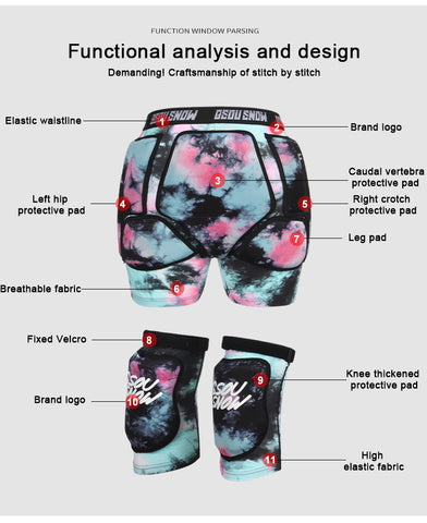 Adult Black Ski Snowboard Protective Gear Shorts And Knee Pads Set
