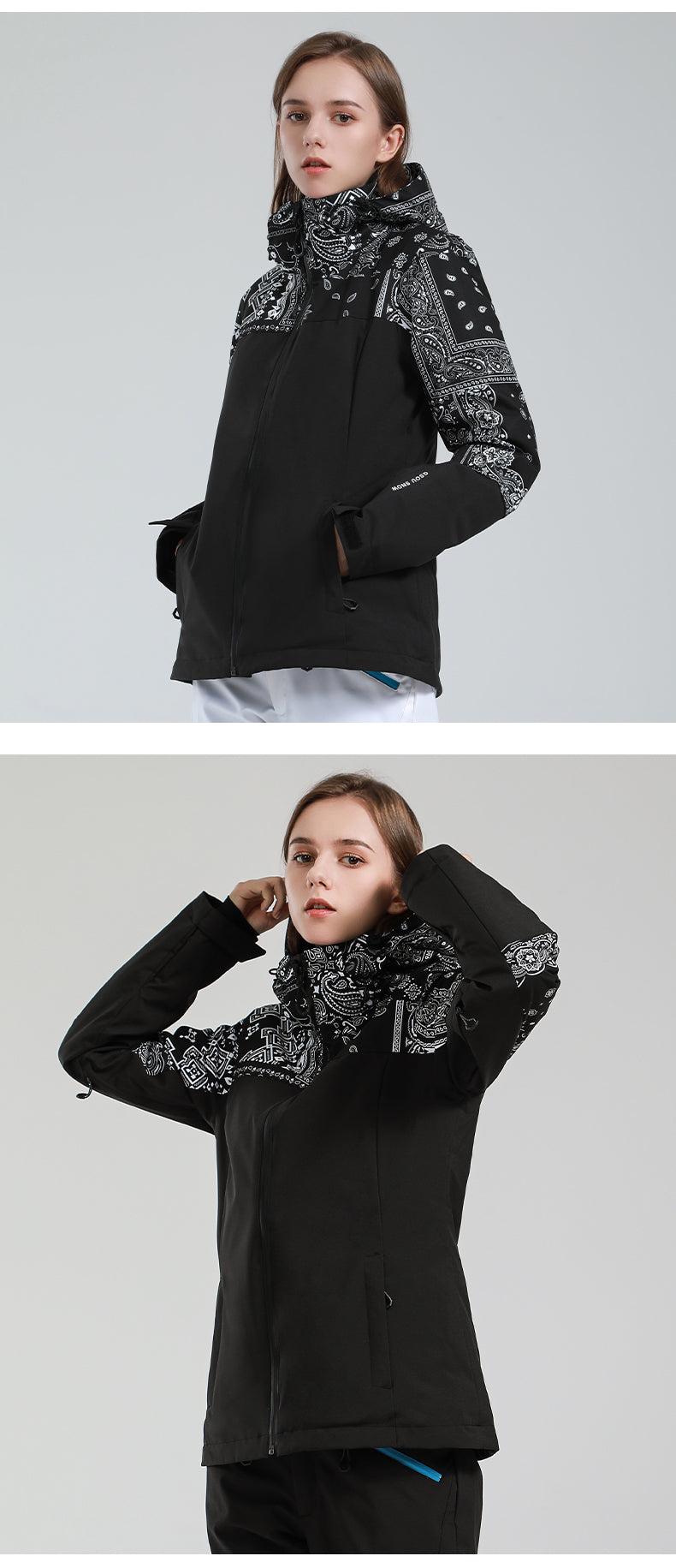 Women's Back To Mountain Downhill Winter Hooded Ski Jacket